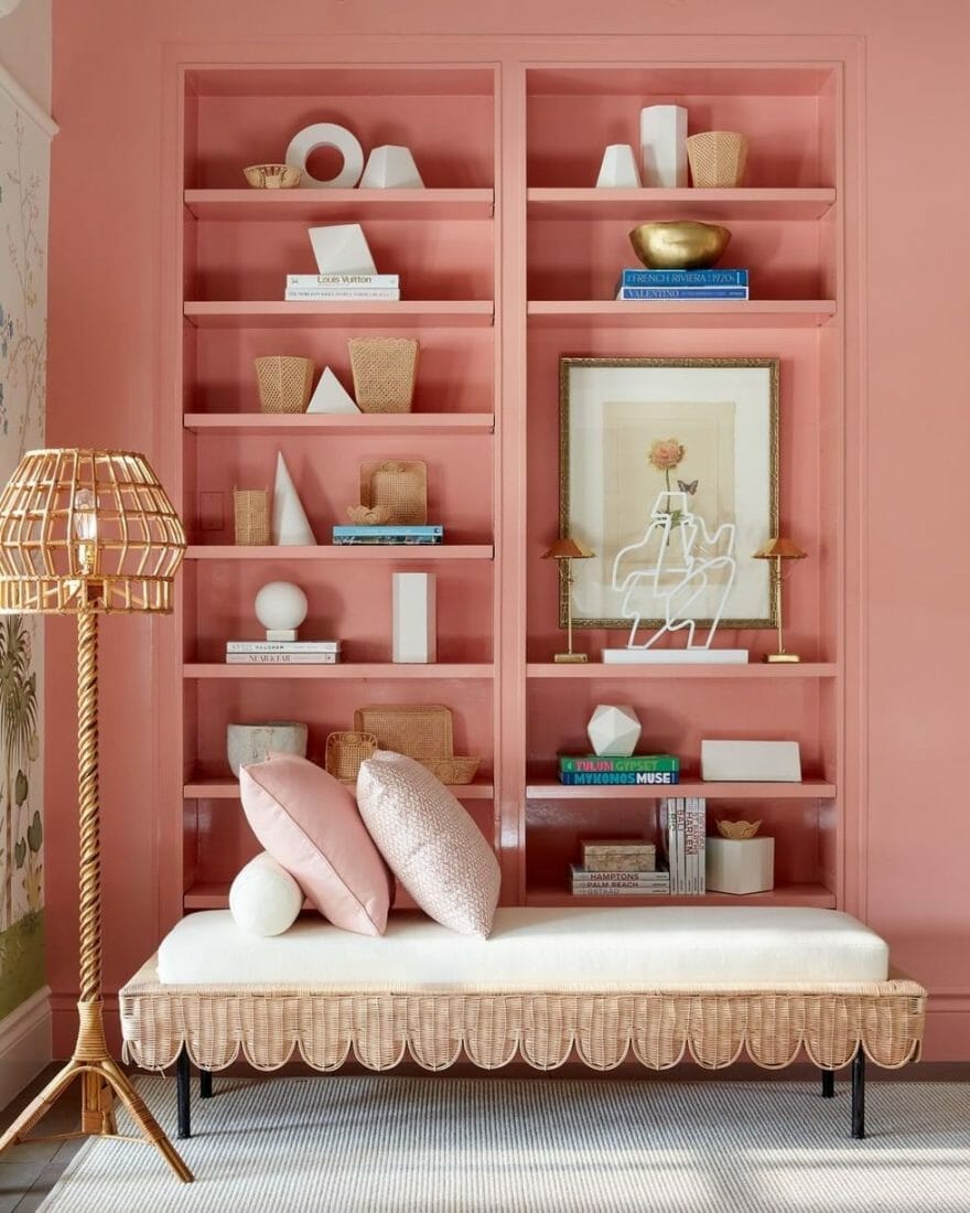 Sherwin-Williams have a palette consisting of coral pink wall coloring ideas. They are Dishy Coral, Coral Bells, Coral Reef, Coral Bead, Begonia, Charisma, and Grenadine, from which you can pick one to create a peaceful reading nook.