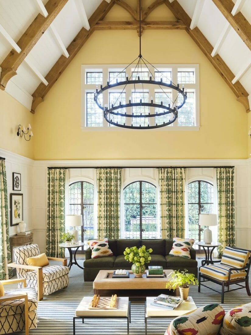 18. Charmed Yellow for High Ceiling Living Room