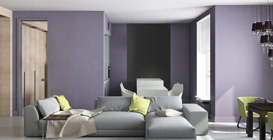 22. Violet Living Room Wall as Mood Booster