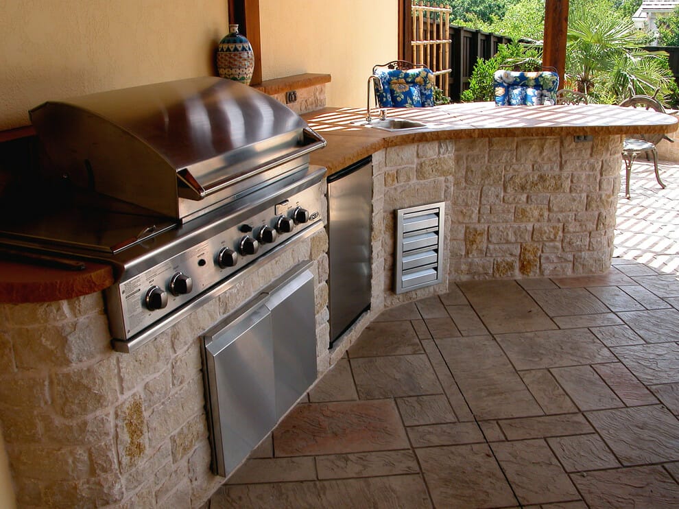 Concrete patios often have many pros and cons. Regardless, this material is relatively safe to be installed near your BBQ island.