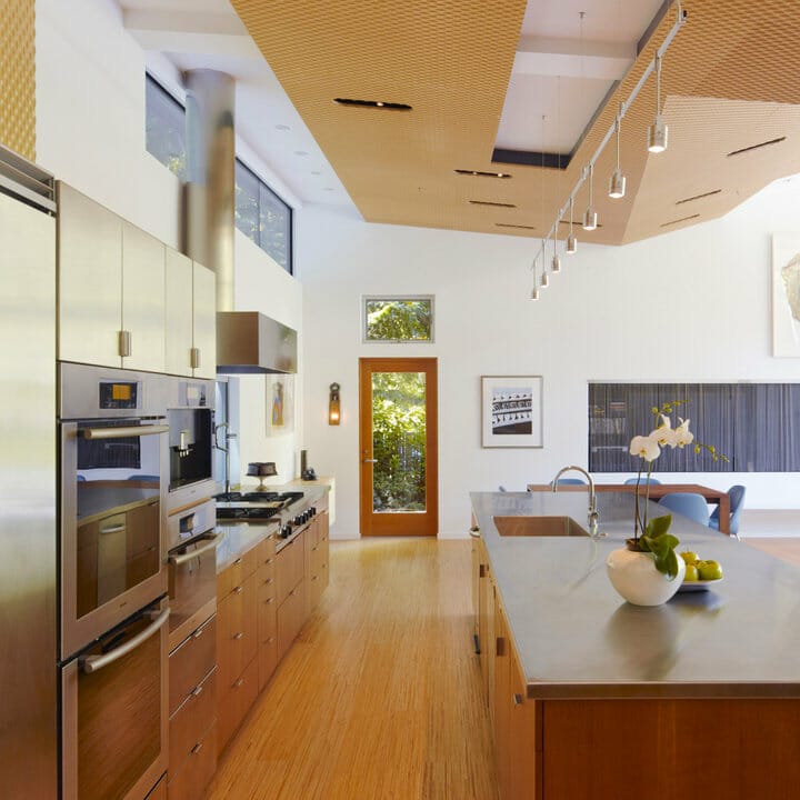 Who says modern ceilings have to be bare? Simply implement the right ceiling design in the cooking area, and it doesn’t lack any distinctive character. This kitchen, for example, seems intimate due to the wooden beadboard ceiling.