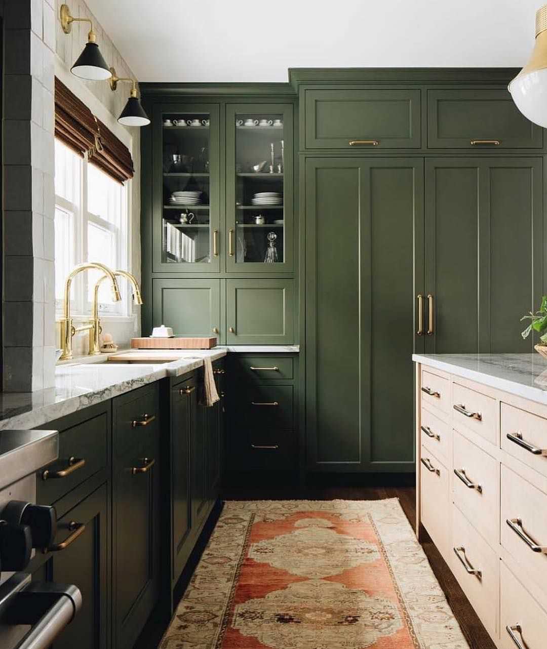 1. Two-Tone Green Kitchen Ideas