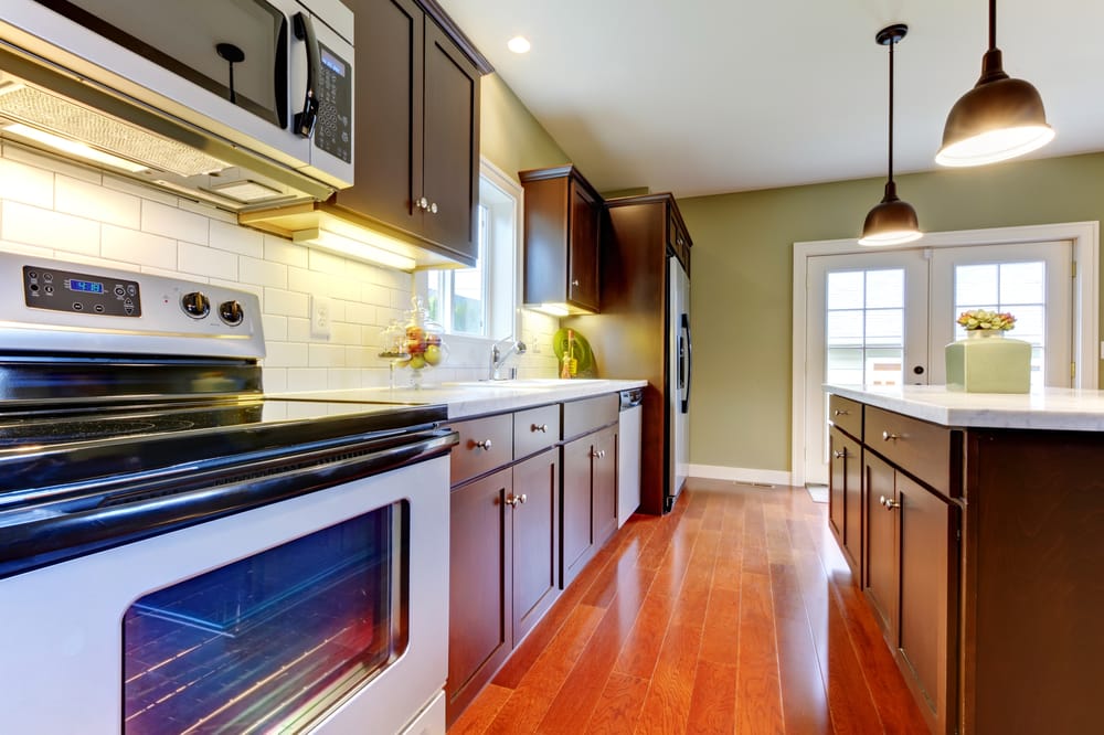 Do you want to style your kitchen? Lay white subway backsplash tiles horizontally. Then, install white ceramic floor tiles. They truly open up the space.