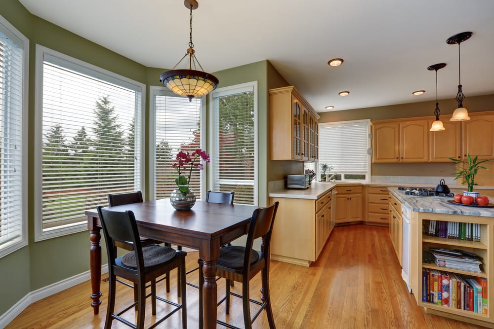 A bay window over sink costs around $300. It brings an abundance of daylight into the room. Plus, it connects the indoors and outdoors.