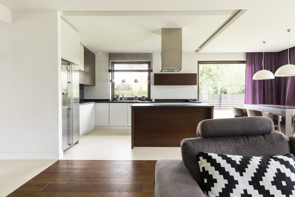 Here, I show you an ultra-modern kitchen boasting stationary windows. They offer breathtaking outside views and bring in more sunlight.