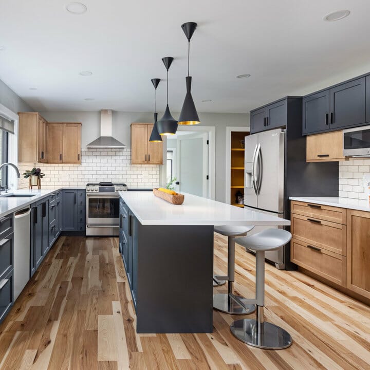 It is a contemporary design that you can adopt with a relatively simple style. That is by presenting two tones at once in your cabinetries system.