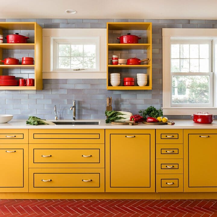 Suppose you already have a standout cabinet in yellow, but you still want to add more powerful energy to your kitchen.