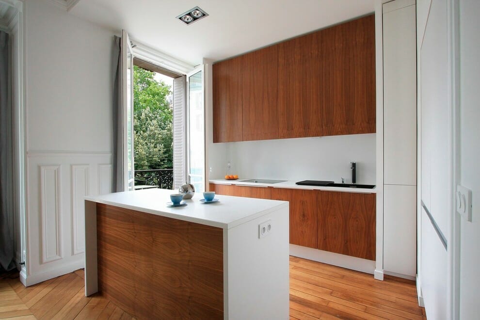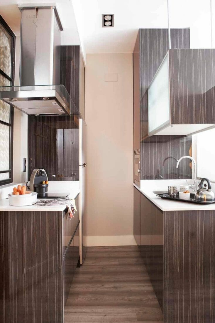 However, it offers a lot of space to store. Updating your kitchenette into a galley kitchen also means a way easier task and lower budget to prepare.