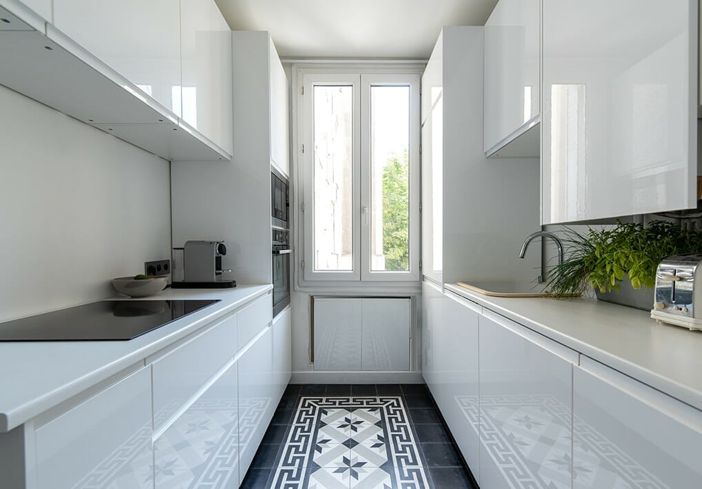 With these patchwork tiles, you will not require any other decorations for your galley kitchen. That way, you could optimize the existing space with other needs.