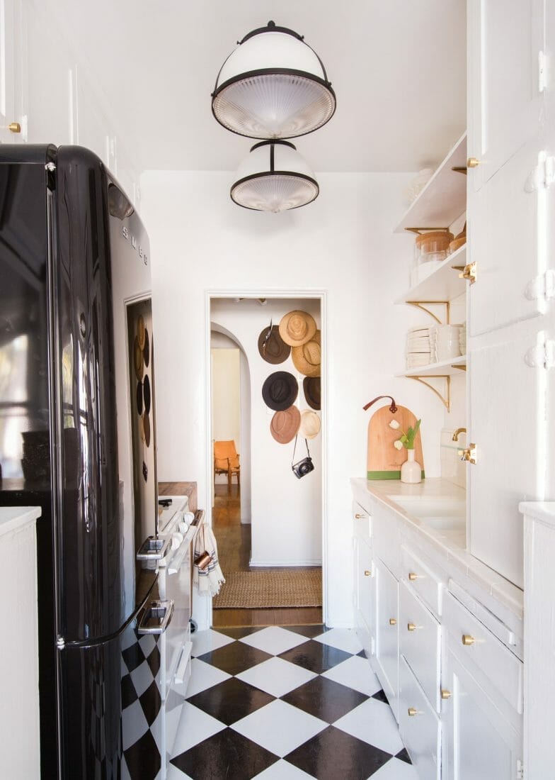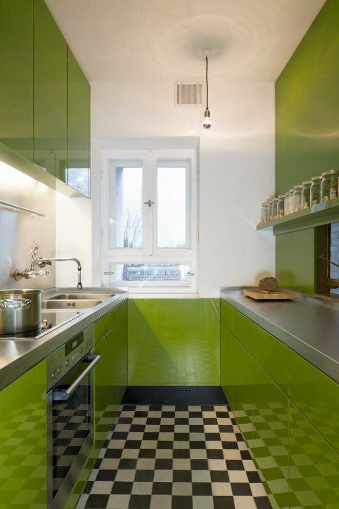 17. Checkerboard Galley Kitchen Floor