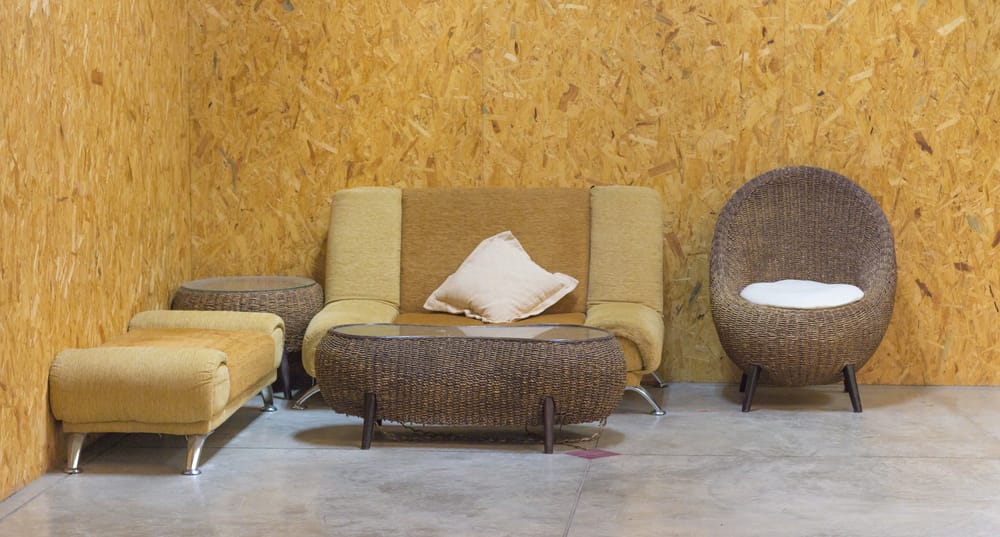 Flat sofa and mini couch are tailored units. Additionally, wicker chair and tables evoke an easygoing seaside ambiance.