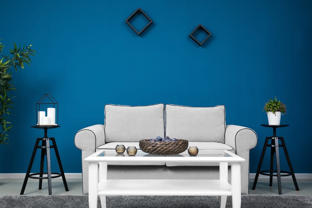 If you love an on-trend living space, give this idea a try. Sapphire blue wall quickly makes a bold statement. It serves as a cool backdrop too.