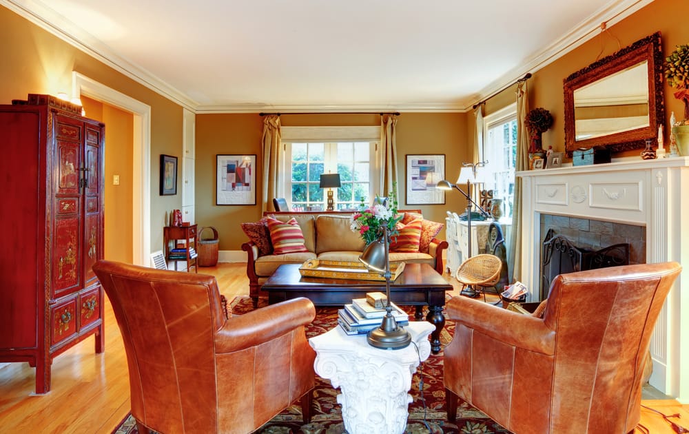 You don’t have to dwell in the countryside cottage to duplicate this room. Just incorporate traditional sofa and armchairs into your space.