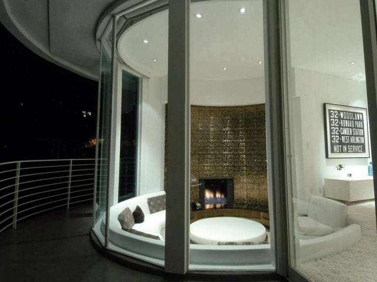 Are you not into a classic sunken conversation area? This one surely captivates your heart. It employs white sofas and a coffee table.