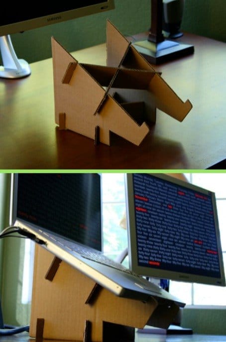 To construct the table, you need strong cardboard and scissors. Be sure it suits to the dimension of your laptop. You will thank me later because it effectively helps reduce eyestrain.