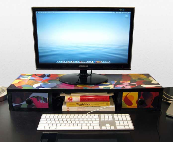A designer on Youtube shared an uber-cool DIY project. Instead of using books to elevate the monitor’s height, she builds a compact PC desk. It features an open shelf and drawers to keep the necessary items in place.