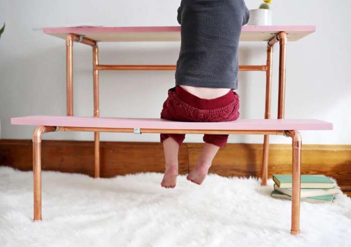 As the picture shows, the computer desk is specially created for kids. Since it features a chair, you definitely can save money. Moreover, it combines copper with pastel pink. It is so gorgeous!
