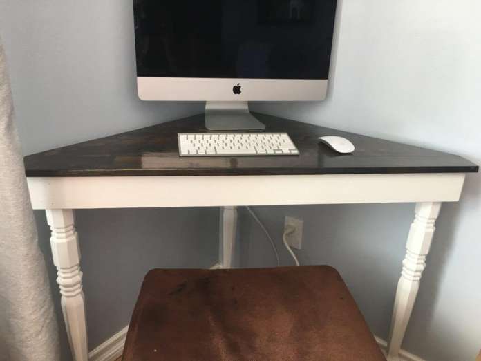 As you can see, the computer desk fits perfectly in the corner of the room. The dark wood countertop is a high contrast to white legs.