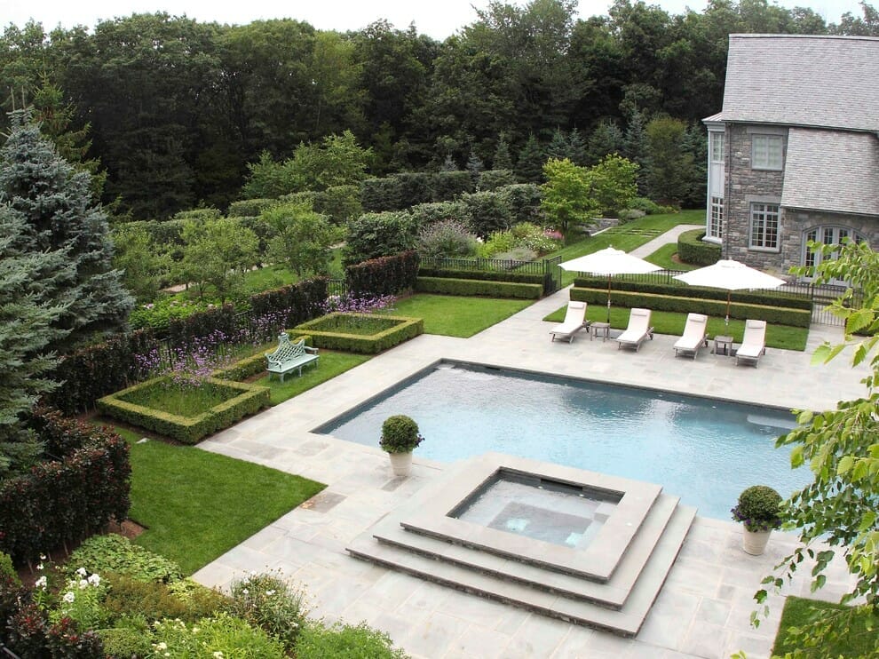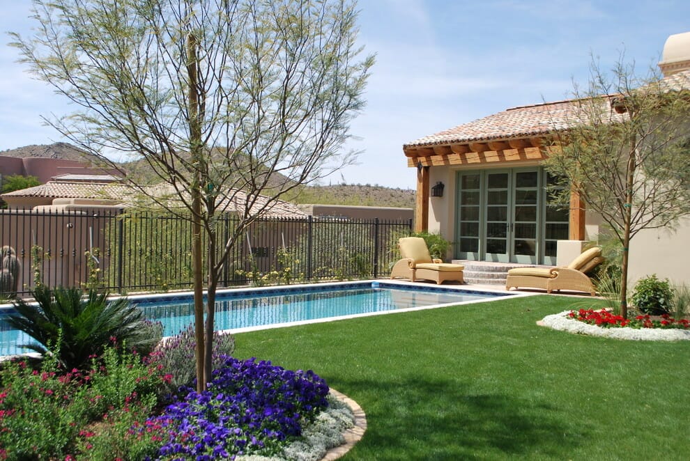 A symmetrical look is still a thing. You can gain this look by balancing your rectangular pool landscaping ideas.
