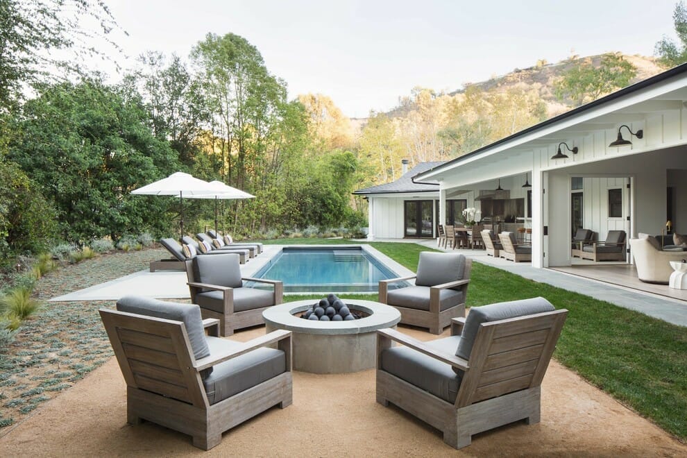 Next to the pool is a sunken outdoor living room with fire pits, which makes a perfect place for hanging out.