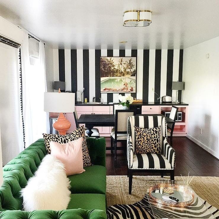 Many homeowners want serene spaces. However, if you like something spunky and bold, consider going for black and white striped walls.