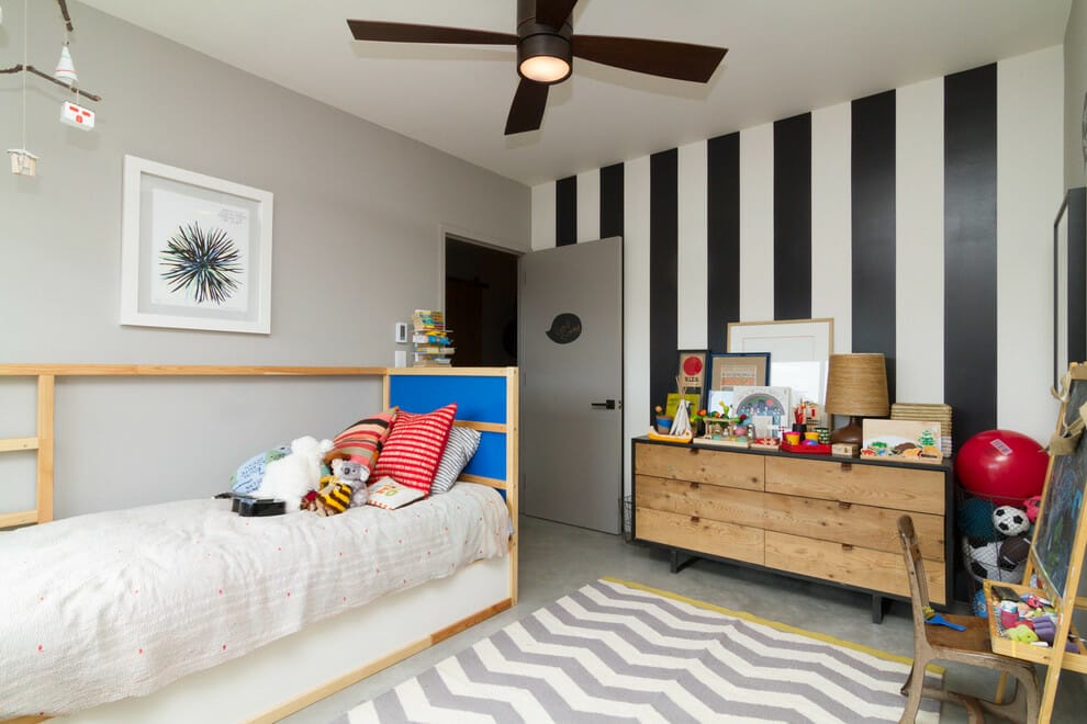 17. Boy’s Bedroom with Black and White Vertical Stripes