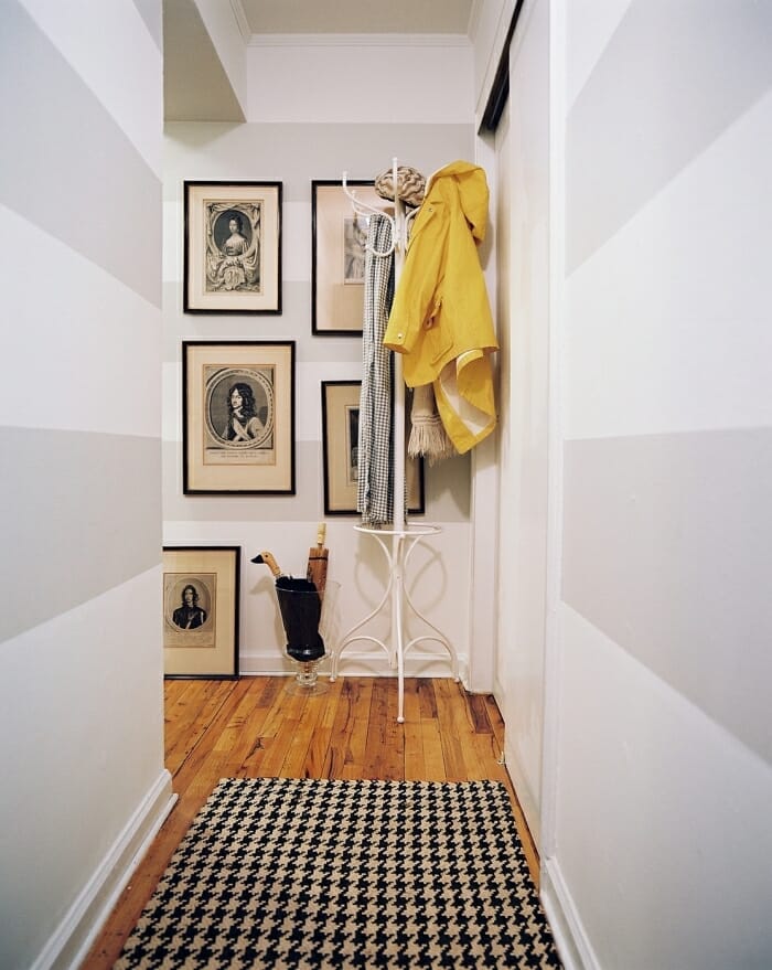 Because of the striped walls, the entryway looks slightly bigger than it is. Moreover, they generate a statement.